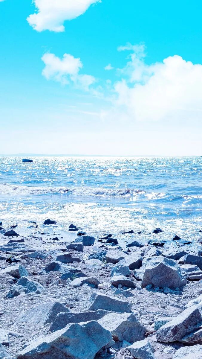透彻的湖水倒影着纯蓝的天空,这便是呼伦贝尔草原上的蓝色钻石——呼伦湖。
