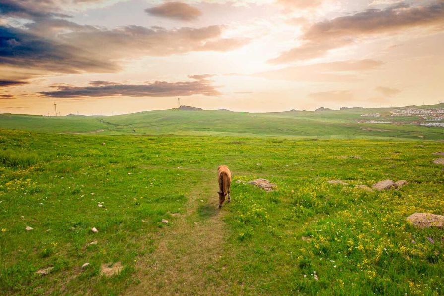 与远处成群的牛、羊、马群为伴,远离浮华。