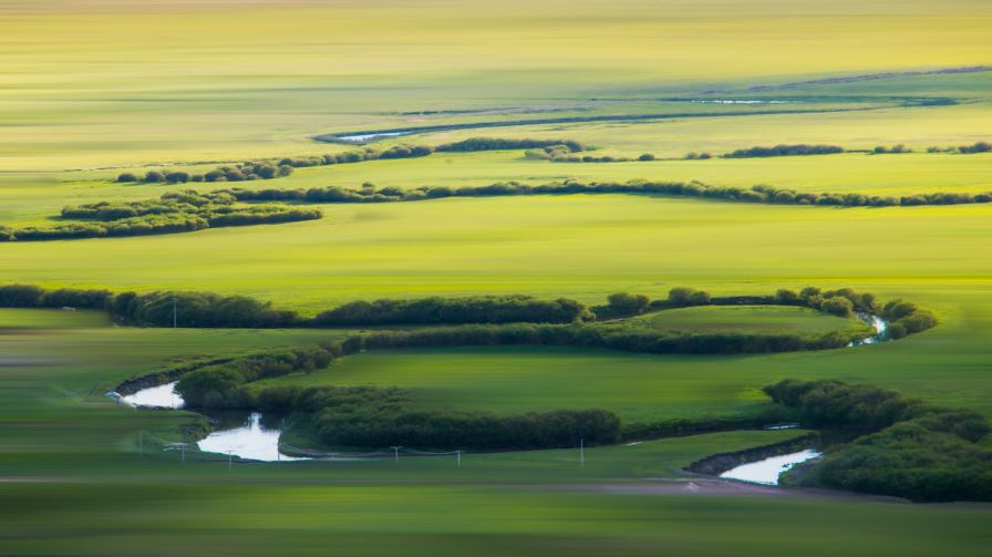 美丽的乌拉盖河静静流淌在碧绿的草原上,吸引了众多摄影爱好者,也是影视剧倍受青睐的取景地,电影《狼图腾》就是在这片草原上取景拍摄的。