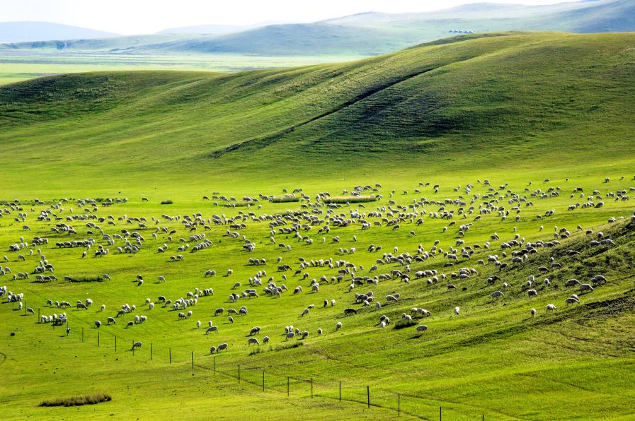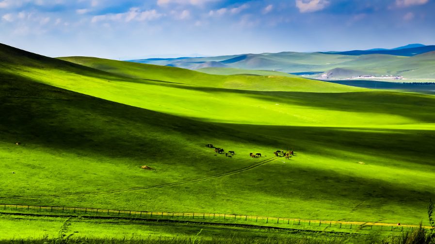 呼伦贝尔草原是我国目前保存最完好的草原,水草丰美,有"牧草王国"之称。