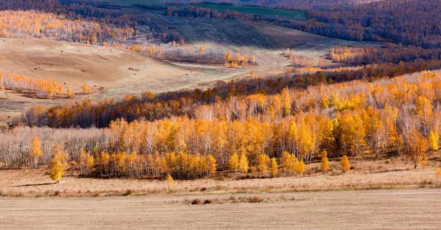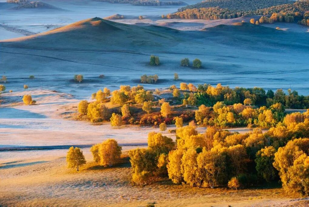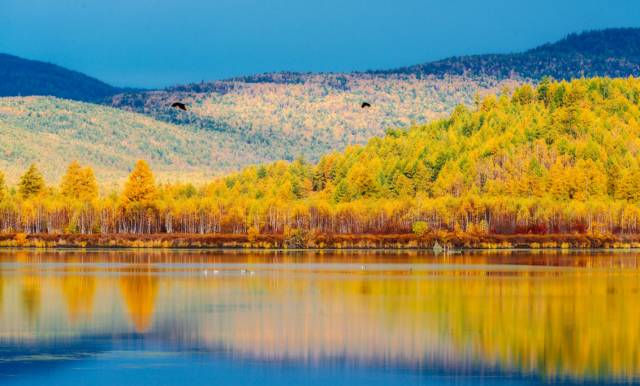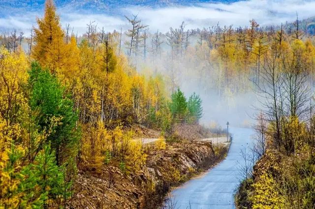 它有广袤的大兴安岭,落叶松和白桦林都会在秋天褪去绿色,换上金黄外衣。