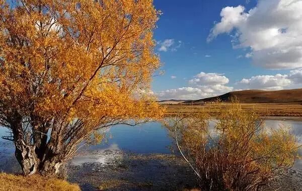 蓝天白云,千里红叶,这样的壮景只有在大兴安岭的秋天才能看到。