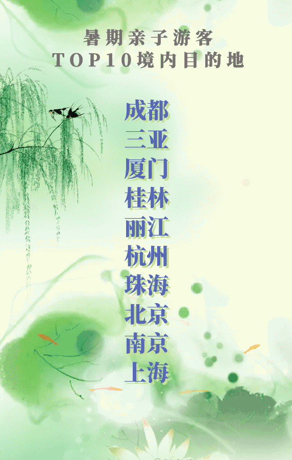 天气渐热,人们的出行热情似乎也被似火的骄阳点燃了。数据显示,成都、三亚、厦门、桂林、丽江、杭州、珠海、北京、南京、上海目前是在亲子人群中备受欢迎的十大国内旅游目的地。
