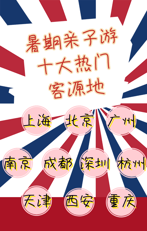 在旅行中,孩子们可以用脚步丈量世界、一路开阔眼界,感受各地大好河山和风土人情。那么,哪里的家长最热衷带孩子出门“放风”呢?数据显示,上海、北京、广州、南京、成都、深圳、杭州、天津、西安、重庆是今年暑期亲子游十大热门客源地,这些城市的家长带孩子出游的意愿更高。