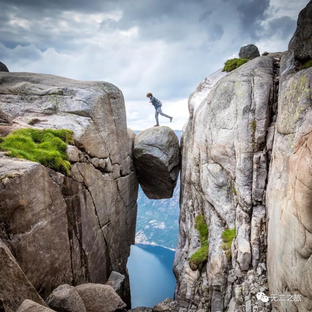 站在奇迹石(Kjeragbolten)上俯瞰峡湾,站在上面可以将吕瑟峡湾尽收眼底,那样的风景,真的不仅仅是壮丽可以形容。