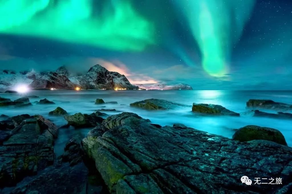 与在芬兰雪地上空游离飘舞的极光不同,在挪威看到的极光,时而爆发在大海上,时而飞翔在峡湾间,气势磅礴又妖娆婀娜。