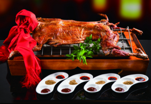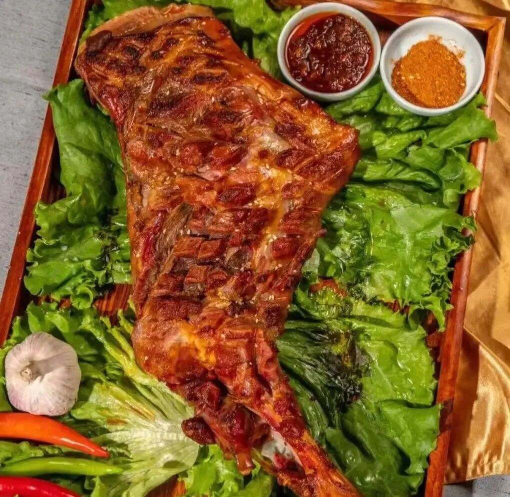 科尔沁烤全羊是蒙古族传统名菜,为招待贵宾或举行重大庆典时的盛宴特制的佳肴。内蒙古烤全羊外焦里嫩,皮脆肉滑,色泽金黄,鲜香异常,吃起来肥而不腻,酥脆香美,与平时吃到的本地羊肉有很大的不同。