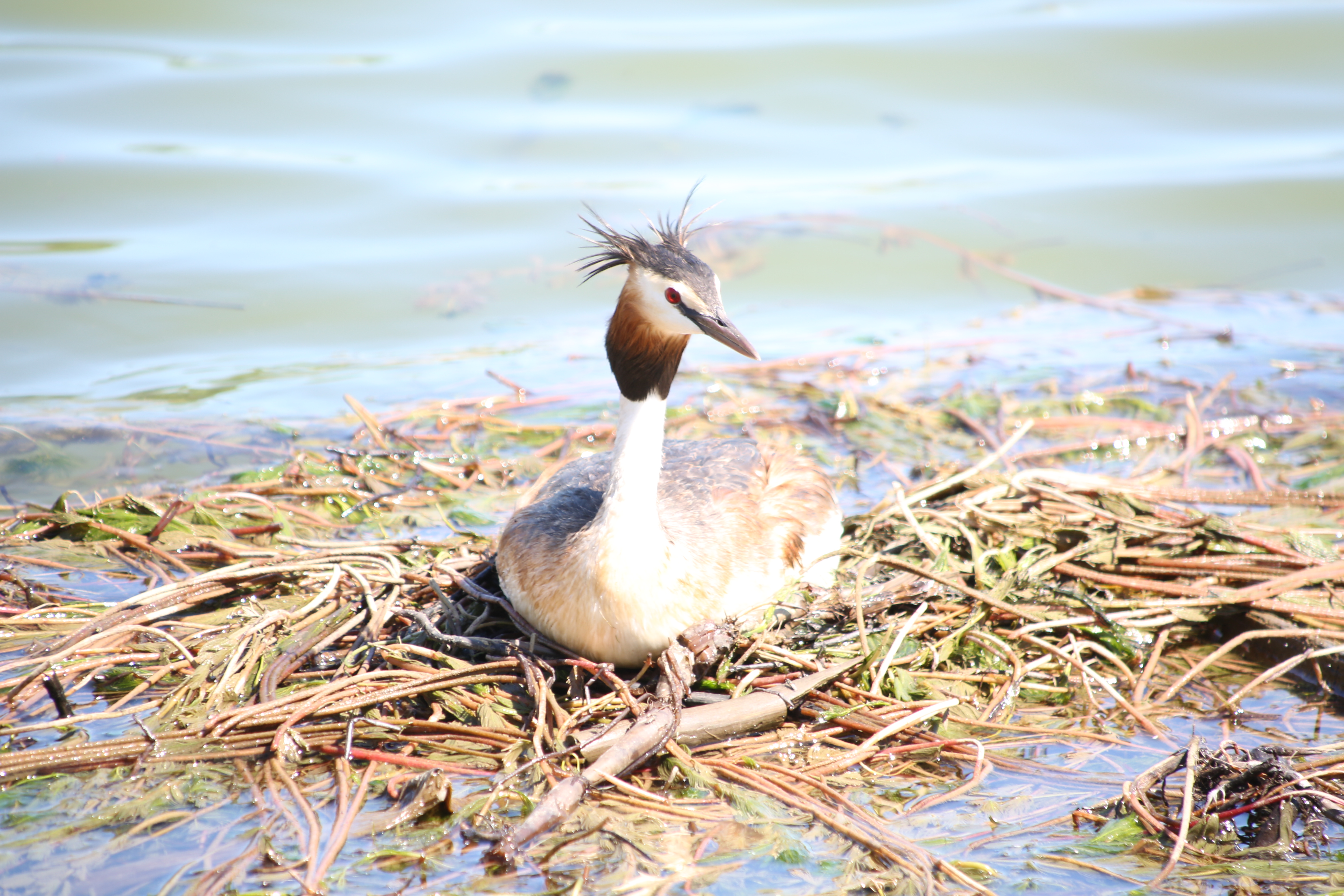 凤头鸊鷉在乌兰浩特洮儿河国家湿地公园产卵孵化下一代。