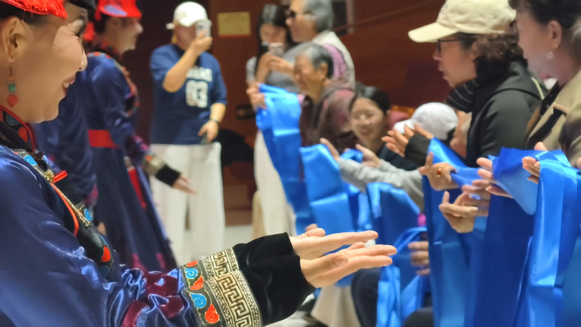 一曲深情的《父亲的草原母亲的河》,让观众们身临其境草原的芬芳、大河的浩荡,台上台下共同唱响这支“心里的一首歌”,将舞台氛围燃至最高潮。歌声未了,演员们手捧蓝色哈达有序走下舞台,为观众送上惊喜,诚挚邀请观众们前来美丽赤峰做客,共赴北疆之约。“我经常去草原,刚刚从那边旅游回来,这首歌又把我带回了美丽辽阔的大草原,太想念了,太神往了……”北京市民李悦盛赞此次演出让自己梦回草原。