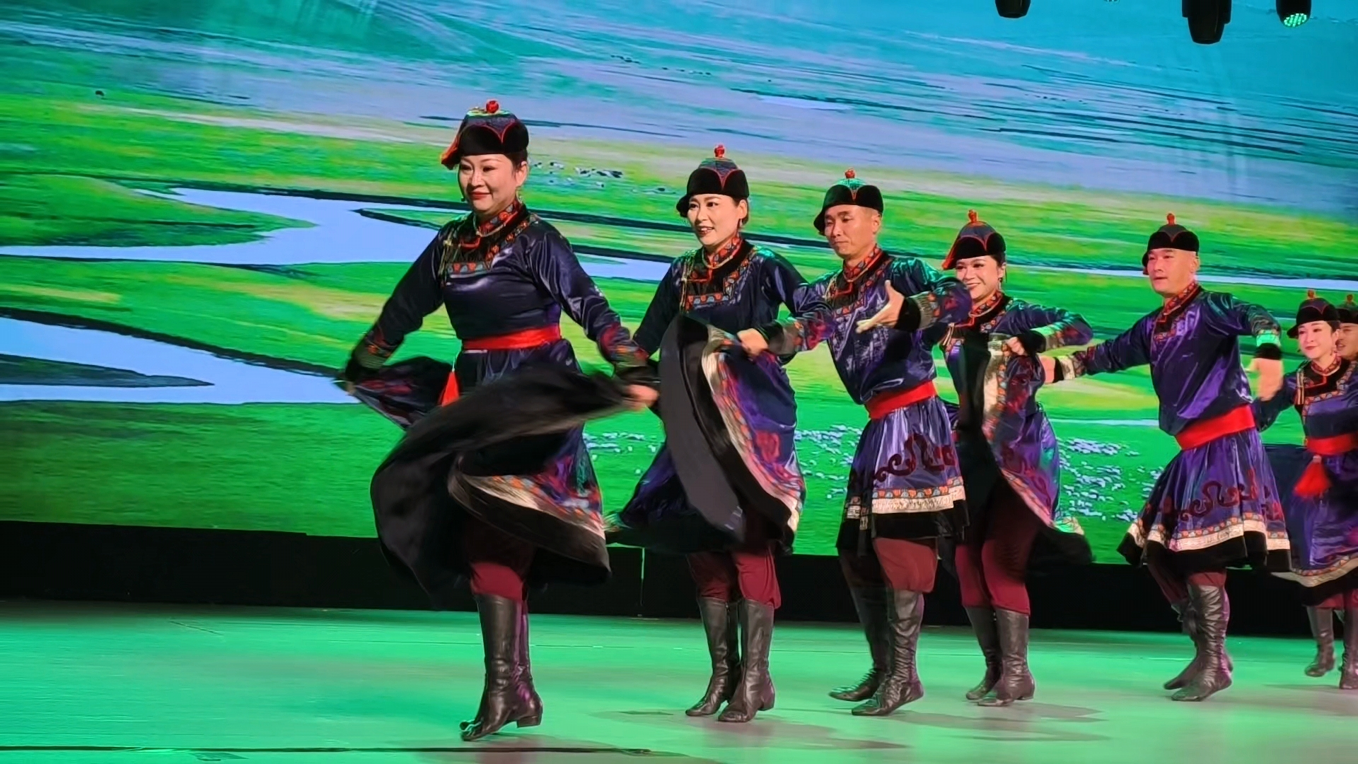 曾获中国舞蹈最高奖“荷花奖”,被授予民族民间舞大赛十佳作品荣誉称号的《巴林德布斯乐》惊艳亮相,演员们时而纵身跳跃,时而蹁跹旋转,时而韵律踏响脚下的舞台,以优美潇洒、气势豪迈的蒙古族踏舞,赢得了台下观众雷鸣般的喝彩声和掌声。