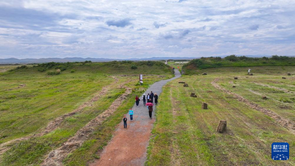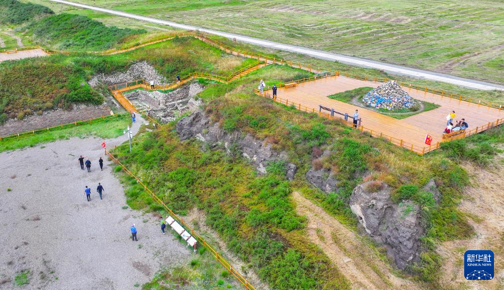 9月16日,游客在元上都遗址游览(无人机照片)。新华社记者 彭源 摄