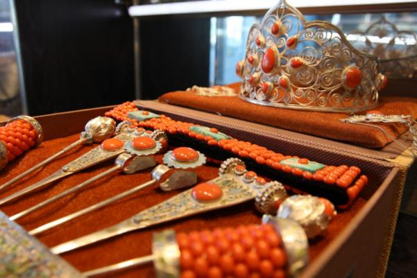 ③科右中旗五角枫特色工艺品:结合当地五角枫景区制作而成的银饰品以及茶具、酒具系列、马鞍马具等工艺品及旅游纪念品。