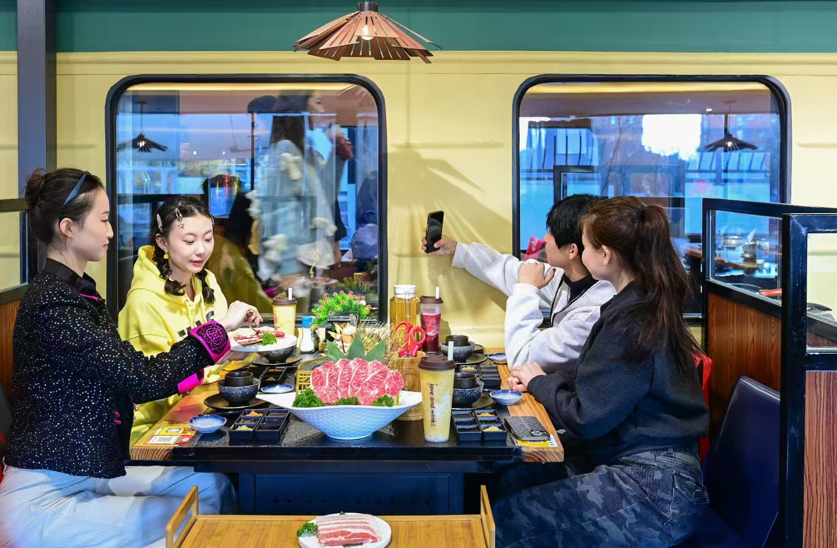歌舞送来吉祥,美食传递幸福。笔者在康巴什看过多场文艺表演,有专业团队的,也有群众演出,每次看后都赞叹不已,期待下次。去年国庆,我们在乌兰木伦景观湖畔观看了烟花秀、无人机表演、音乐喷泉,其高超的美感与魅力刷新了先前的认知。当地的舌尖盛宴外界鲜知,有被称为蒙餐八绝的手把肉、沙葱包子、血肠等非遗美食,也有被称为创意融合的羊绒奶茶、沙棘慕斯等新派菜品,还有琳琅满目的夜市等。某天深夜。笔者前往朗景酒店后面的火车皮一条街,不期那时的烟火气还那么旺盛,深感惊羡。