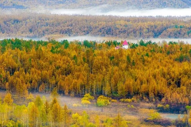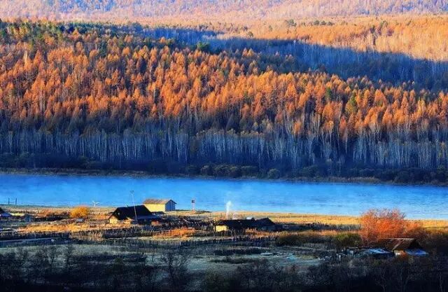 广袤的大兴安岭,落叶松和白桦林都在秋天褪去绿色,换上金黄外衣