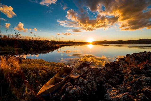 位于阿尔山国家森林公园内的杜鹃湖春天红艳似火,到了秋天则静谧的有些荒凉。