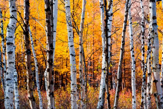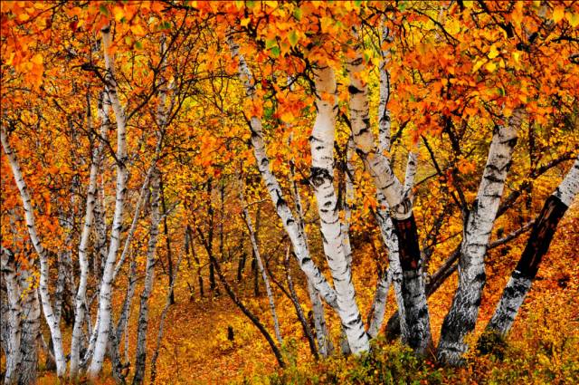 代表着生与死的考验的白桦树,在秋天更像是获得了一次怒放的生命。
