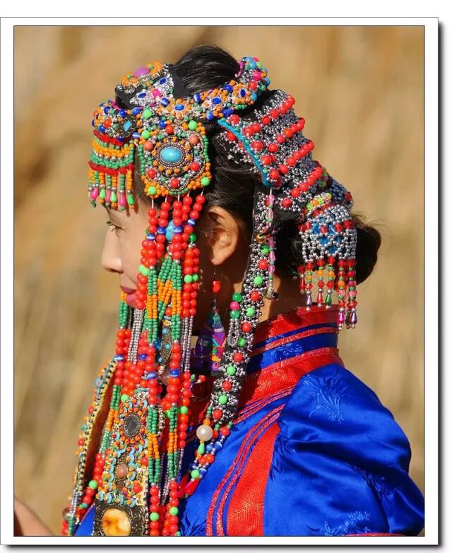 “乌拉特”为能工巧匠的意思,可想而知,乌拉特人的服饰有多么精美繁复。尤其是配饰,无论男女,都堪称艺术。