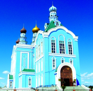 在满洲里,随处能找到俄罗斯的影子,你只需走向充满俄式建筑的街道上,便可明了。传统的木刻楞、俄罗斯小圆顶尖塔式建筑、比哥特式建筑的尖顶还高的高层楼房,街角处是各色各造型的霓虹灯板,尽是写满俄文的商店招牌。