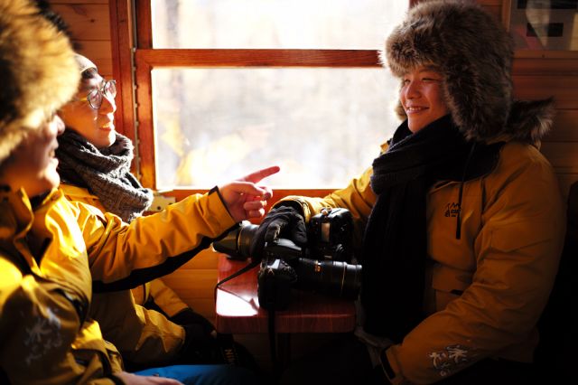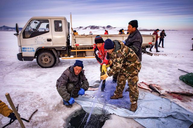小伙伴们从全国各地飞抵乌兰浩特,即使之前做过功课,难免有人会低估内蒙古冬季的气温。欧亚购物中心采购完必备物品,驱车前往距乌兰浩特市32公里的察尔森湖观看2018年的第一场冬捕,祭湖醒网、凿冰眼下网、拉网捕鱼一气呵成。从湖里捞出的第一条鱼即为“开湖头鱼”,往往用来拍卖,头鱼若是个大肥美,意味着今年将会是个丰收年。结束冬捕,驱车前往阿尔山白狼林俗村,在这个仅有87户的村镇落脚,结束一天行程。