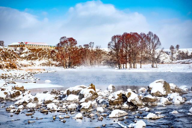 晨起,登顶白狼峰观景台静待日出,眼看着第一缕光投射在自己身上,身前的雾凇也一同被点亮,为这渺小和伟大间极偶然又仿佛宿命般的相遇而震撼。日头渐高,雾霭散尽,近两个小时的车程,驱车前往阿尔山国家森林公园的不冻河。三九严寒,滴水成冰,市境内所有大河小溪皆封冻,唯有此段河水热气腾腾,流水淙淙。登上距离游客中心40公里的驼峰岭天池,俯瞰天池唯美静卧于天地间,享万物静谧无声。