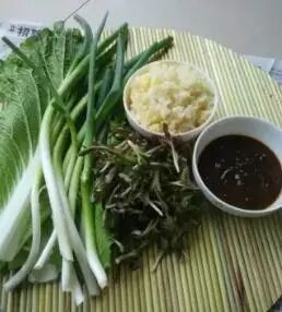 白菜叶,豆瓣酱,两根小葱,两勺子米饭,搭配在一起用菜叶包起来,捧在手里狠咬一口,就一个字——香!