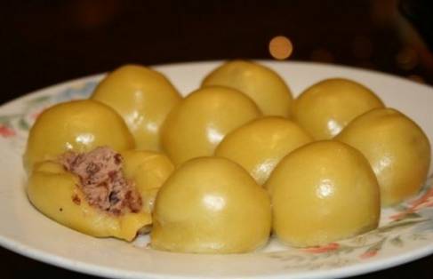 用大黄米做面,经过发酵后,包入红豆馅蒸制而成,具有色泽金黄,口感香软,耐饥的特点。基本进入腊月,才会做这个。