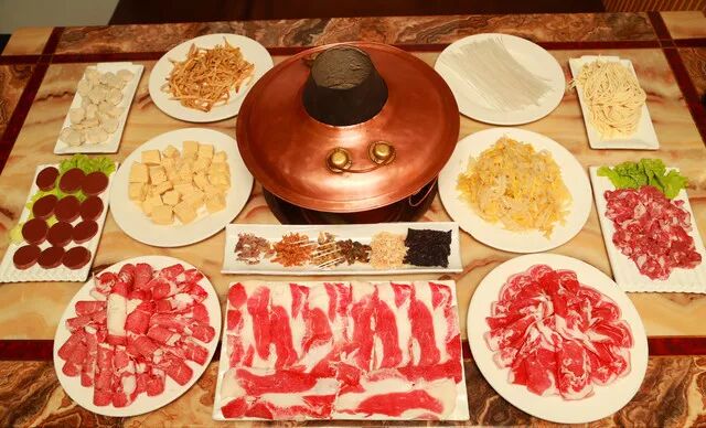 乌拉街的满族铜锅火锅,看着跟北京的涮羊肉差不多,但是锅子顶上火焰熊熊,带着一股子东北劲儿。