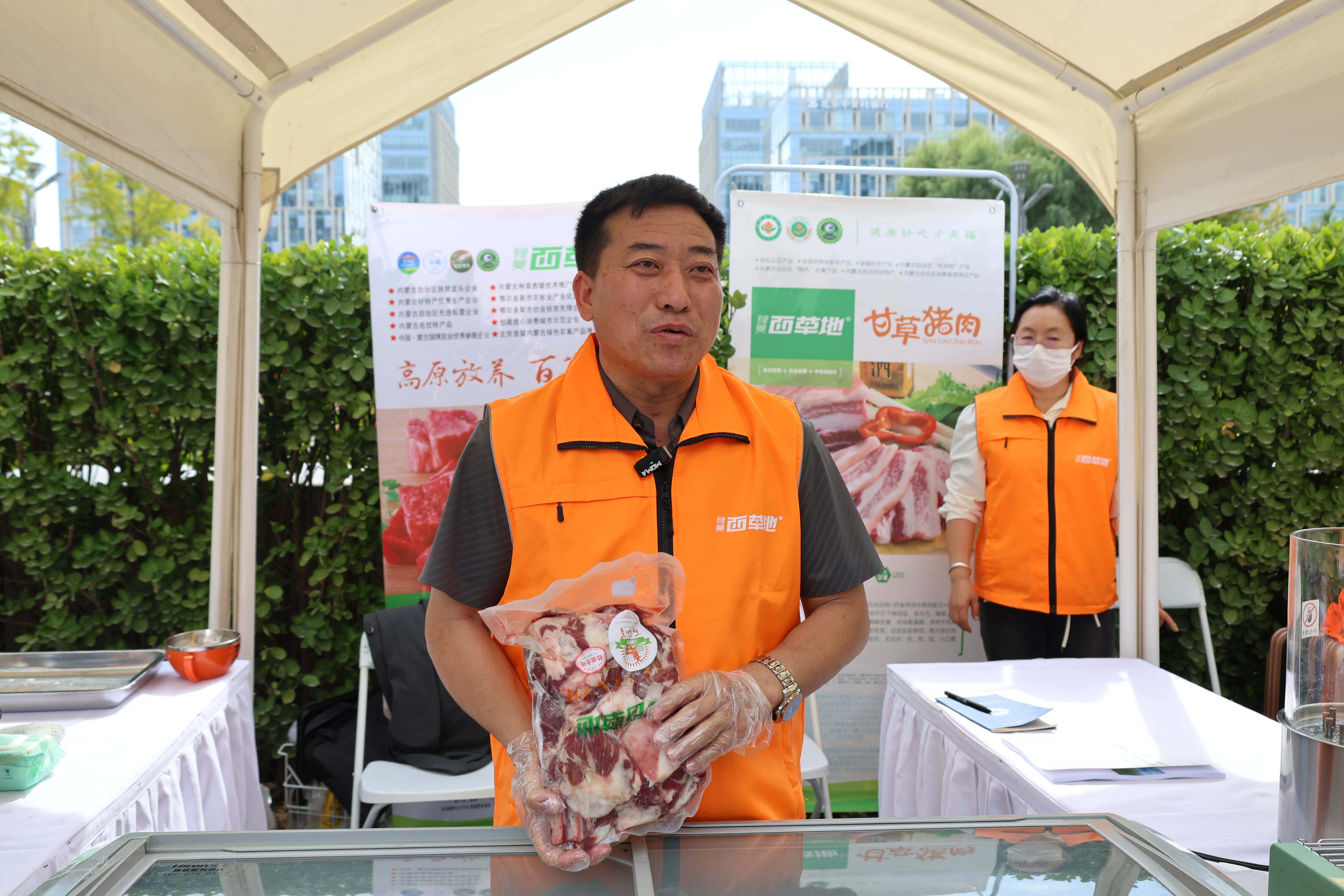 活动展示区品类丰富,农畜特产、手作工艺品、创意文创产品依次排开,而杭锦旗展区无疑是最“勾人”的存在 ——现场烤制的阿尔巴斯羊肉串滋滋冒油,肉香混着孜然香直窜鼻腔;鲜嫩的有机甘草猪肉散发着自然肉香,刚出炉就引得人群围拢。不少观众循着香气上前品尝,一口下去便忍不住赞叹:“这味道也太绝了!”“简直香到心巴上,快‘香哭’了!”