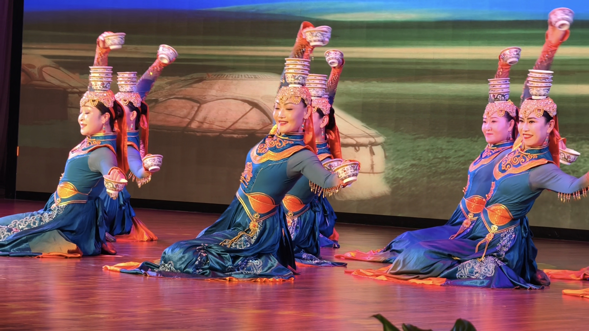 当晚,演员们身着华丽民族服饰,双臂划出优美的弧线,蝴蝶般翩跹起舞,跃动全场……非遗项目顶碗舞《圆之梦》融入现代创新元素,从音乐形式到舞台动作,都令杭州的观众们耳目一新,现场掌声雷动,赞叹声不绝于耳。