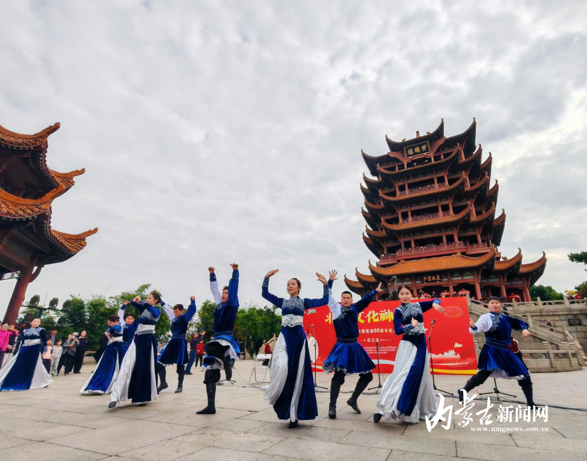 乌兰牧骑在黄鹤楼下起舞