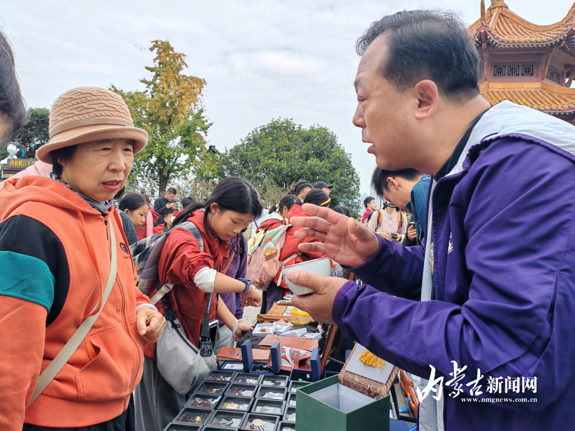 武汉站几场演出的现场,都有一个特殊的身影,他就是自治区级蒙镶制作工艺代表性传承人、内蒙古工艺美术大师李忠强。此行,他带来了不少精雕细琢的作品,精美的吊坠、耳饰、茶具等工艺品,吸引了众多观众。