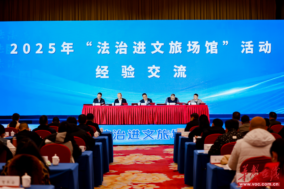 当天下午,2025年“法治进文旅场馆”活动总结会召开。长沙市文化旅游广电局、娄底市文化旅游广电体育局、常德市司法局、花垣县文化旅游广电局、常德画院、长沙铜官窑国风乐园文化旅游有限公司等6家单位代表进行了交流发言,分享了文旅普法经验。