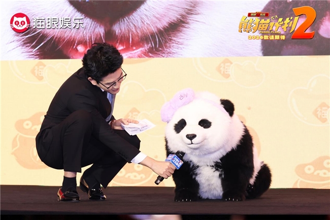 在合家欢喜剧电影《熊猫计划2》的推介环节,“硬核版胡胡”炫酷登场,生动展示行走、摇摆、转圈等动作,瞬间点燃了现场的气氛。影片和宇树科技跨界联动,将熊猫胡胡从数字世界带到了现实,更进一步将虚拟形象转化为可触摸、可互动的“实体熊猫”,让观众近距离感受电影的魅力。