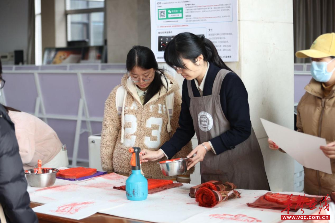 活动当天在图书馆二楼大厅推出“湖南图书馆珍贵版本古籍展”,同步进行的“雕版印刷技艺”“文物修复及复制技艺”“湘绣”“合香”等非遗技艺体验活动同样看点满满。古籍展展示了三十件古籍仿真复制页,从宋元佳椠、明清精刻,到名家稿本、先贤著述,种类繁多,琳琅满目:宋刻元修本《说文解字》字体端庄、墨色厚重,尽显宋代雕版印刷的精湛技艺;明凌瀛初刻四色套印本《世说新语》则以黄、蓝、朱、黑四色巧妙搭配,色彩斑斓、版式精美,展现了明代套印技术的高超水平。非遗技艺体验活动吸引大批青年学子踊跃参与,现场墨香氤氲,气氛热烈。