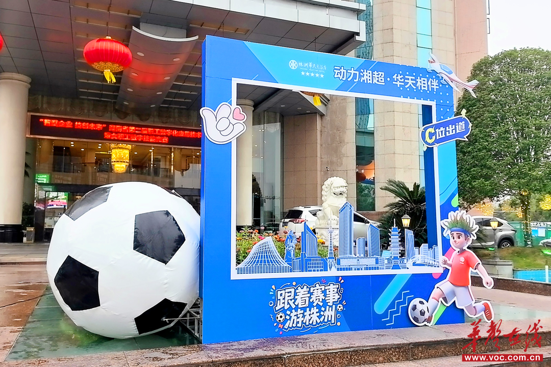赛事期间,长沙通程国际大酒店、株洲华天大酒店、湘潭华都国际大酒店、湘潭华银国际大酒店、益阳碧桂园凤凰酒店等进行氛围焕新,在大堂、走廊、餐厅等公共区域增设湘超赛事主题装饰,包括巨幅赛事海报、球队应援灯箱、足球元素灯光秀、签名墙、湘超周边展示区等,营造出浓厚的赛事氛围。多家酒店还专门设置“湘超打卡互动区”,配备赛事主题相框、足球道具等,吸引球迷拍照分享,并可凭打卡记录兑换餐饮折扣等权益。