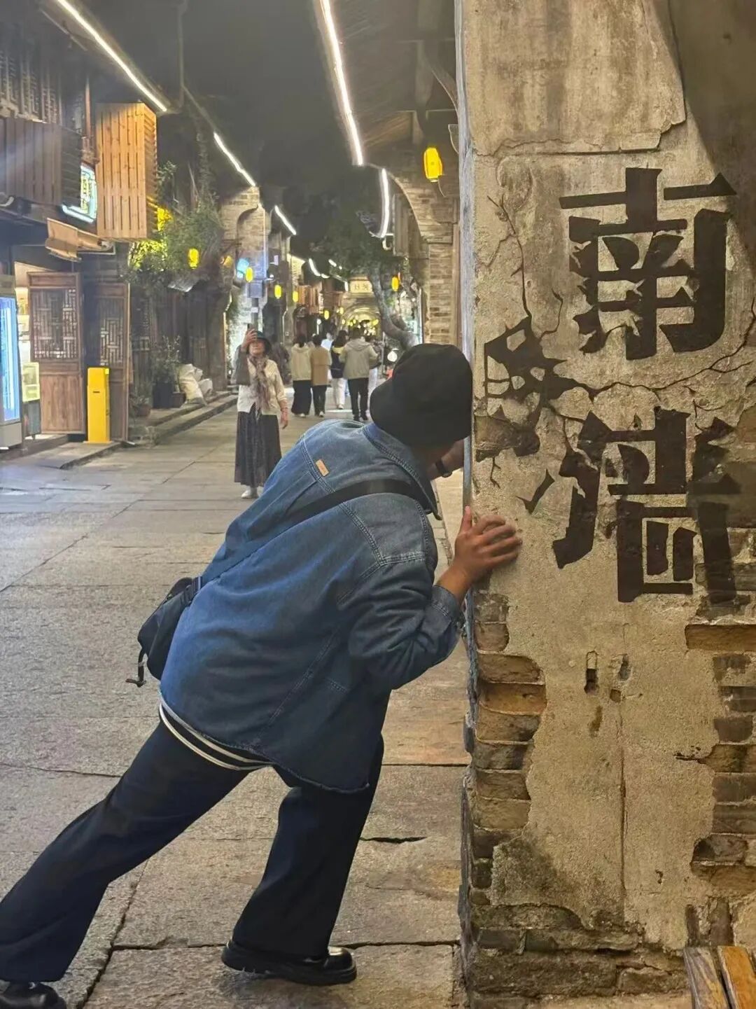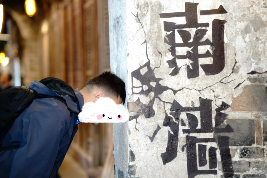 还有人只是轻松地站在墙边,让“南墙”二字成为个性背景