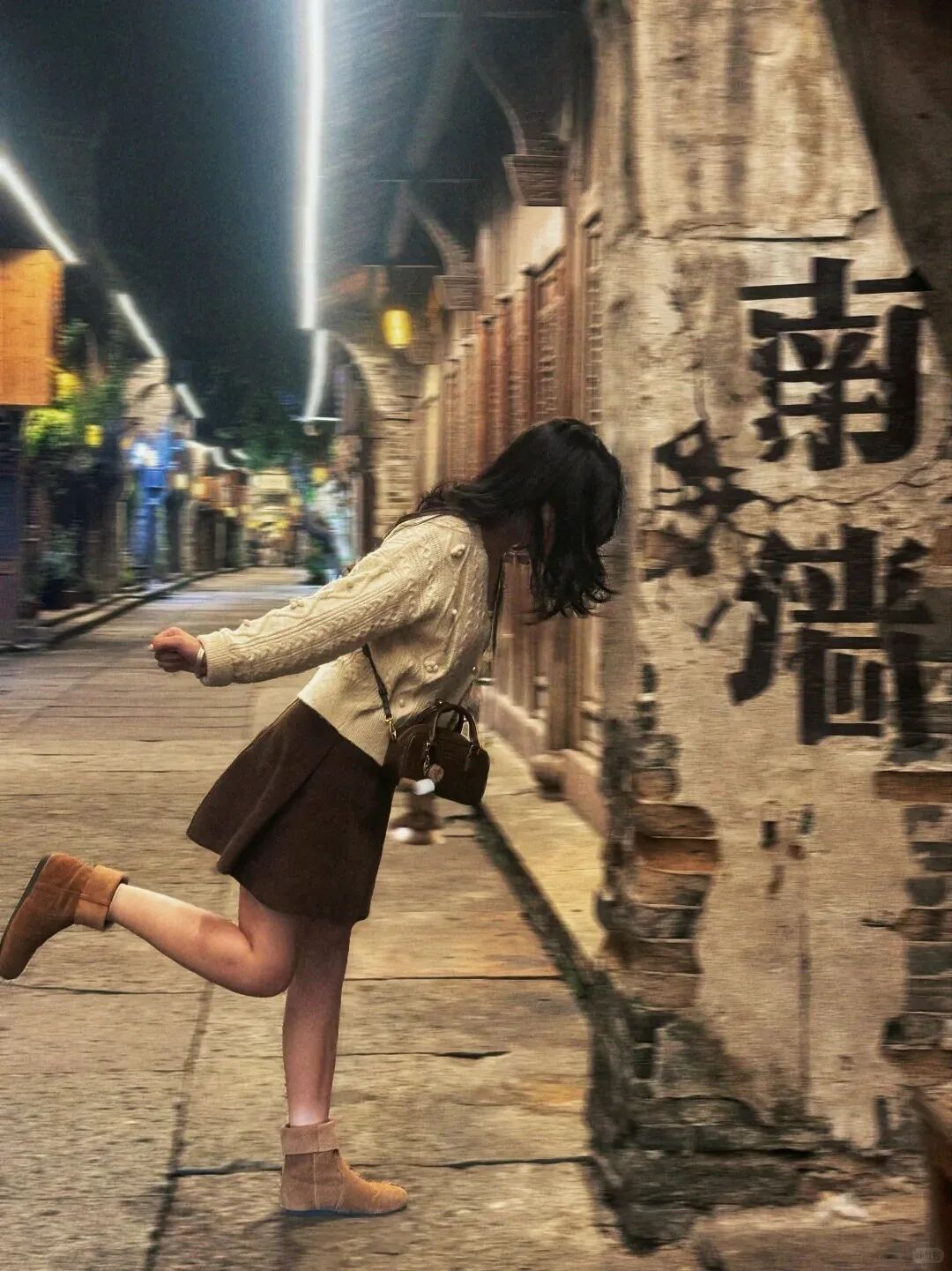 *姿势宝库:除了“撞”,还可以尝试回头望、与墙对话、跳跃等动态姿势,让照片充满故事感。