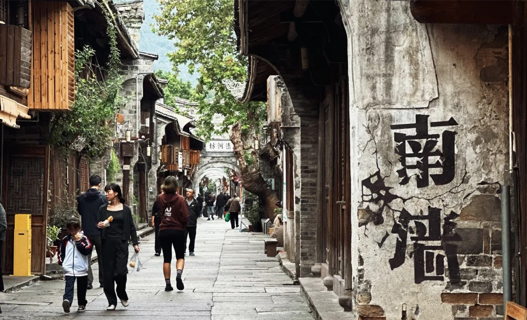 斑驳的墙体、黑白的色调,古街韵味呼之欲出
