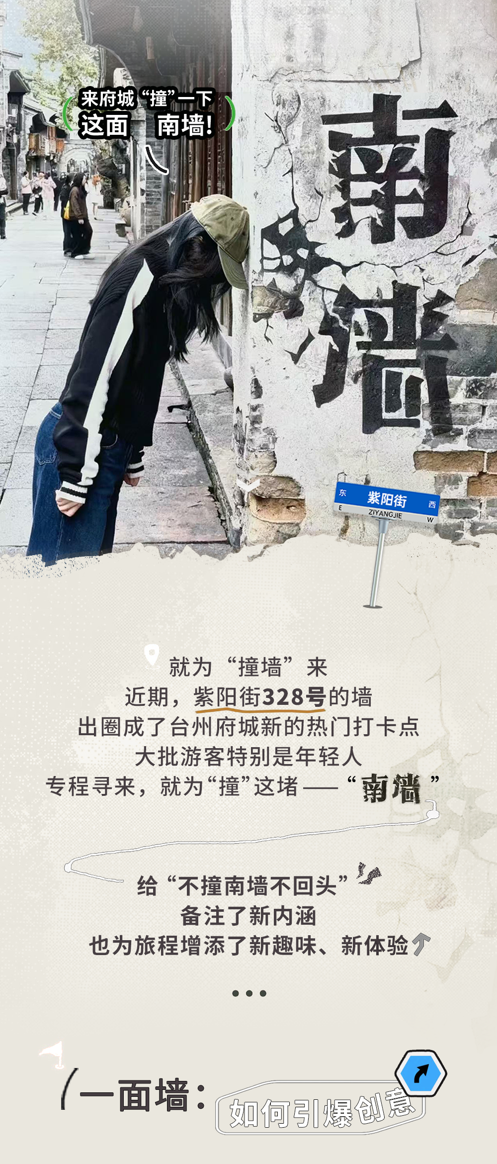 *扩大片场:拍完南墙,别忘了在紫阳街上继续探索。街角巷尾可能还藏着其他有趣的方言墙、彩绘墙,组合打卡,让你的临海记忆更加丰富多彩。